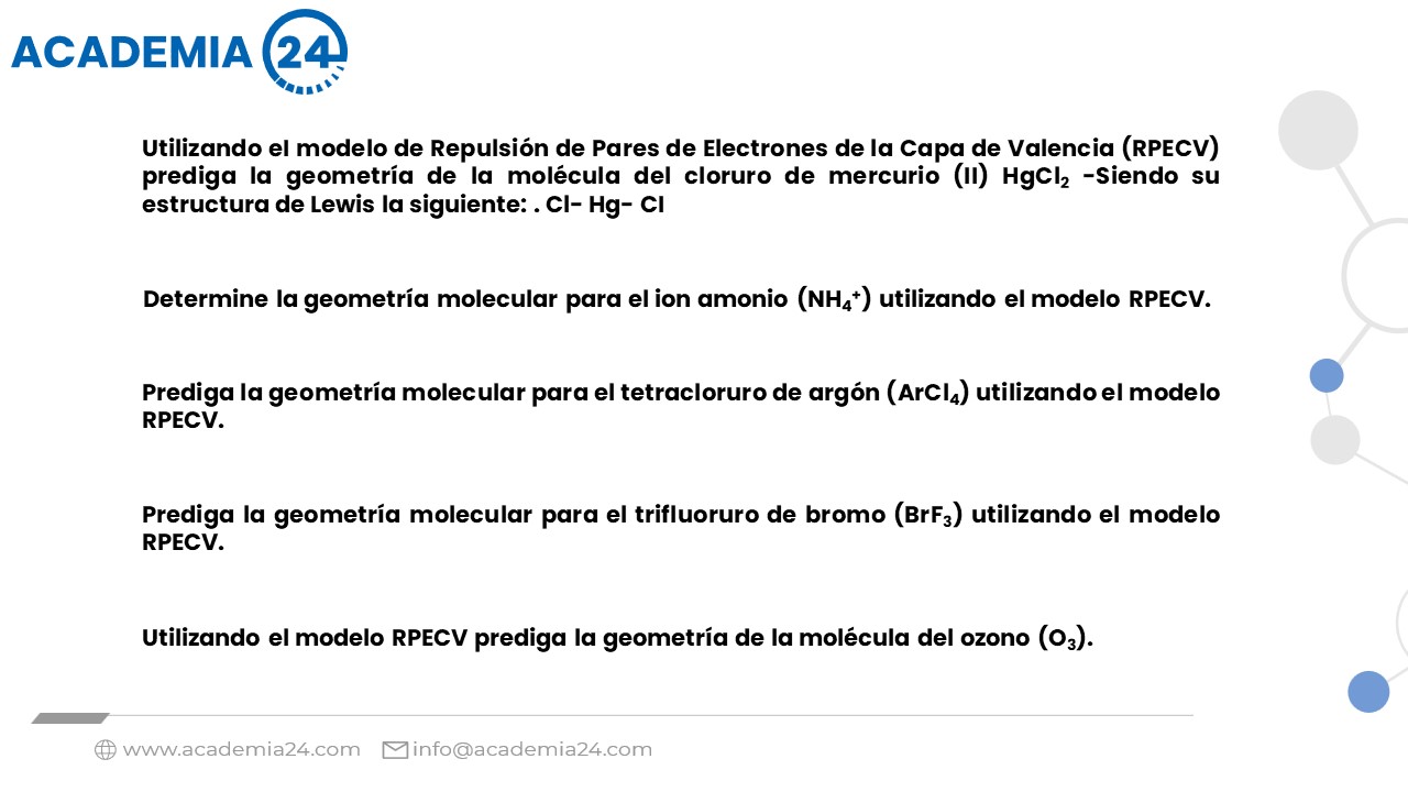 Teorías de la repulsión de pares de electrones de valencia. Geometría de moléculas e iones sencillos