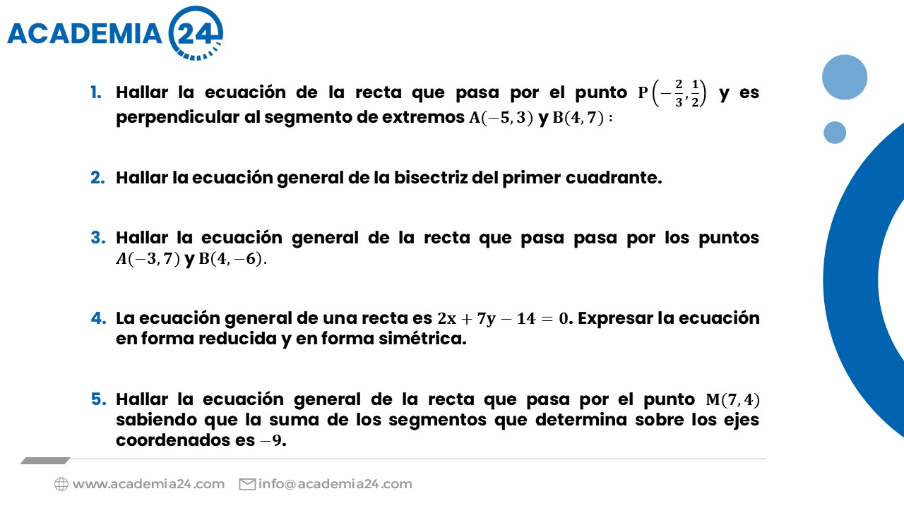 Formas de la ecuación de la recta : Forma general, pendiente y ordenada en el origen. Punto pendiente