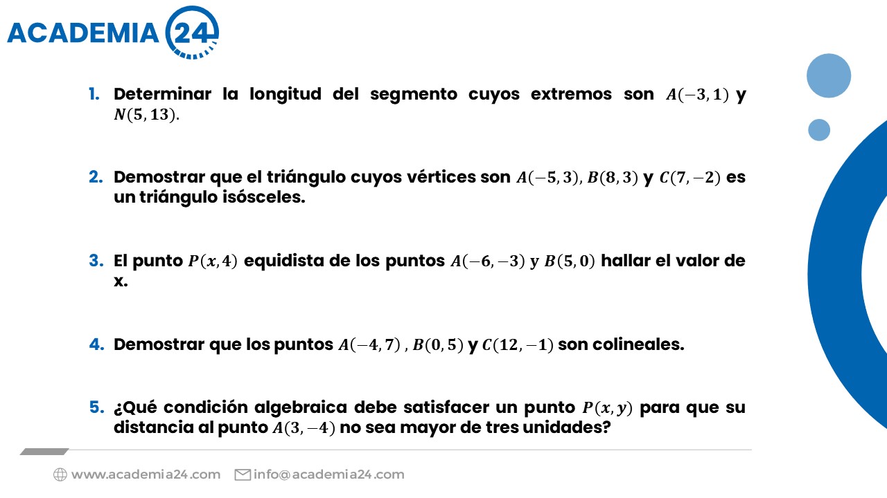 Resolución de problemas utilizando la fórmula para calcular la distancia entre dos puntos