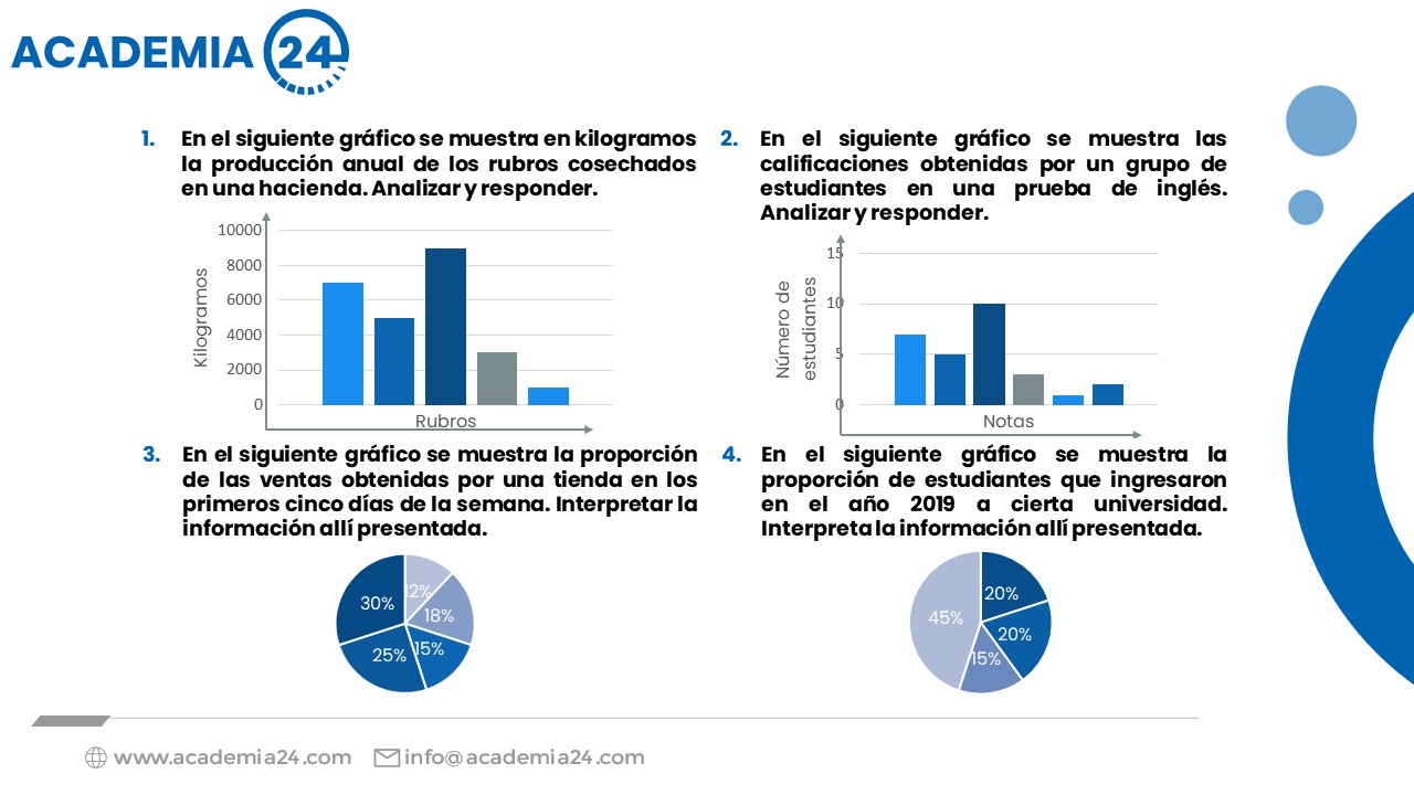 Interpretación de los eventos representados por medio de gráficas: Gráficas de barras, histograma, gráfica circular