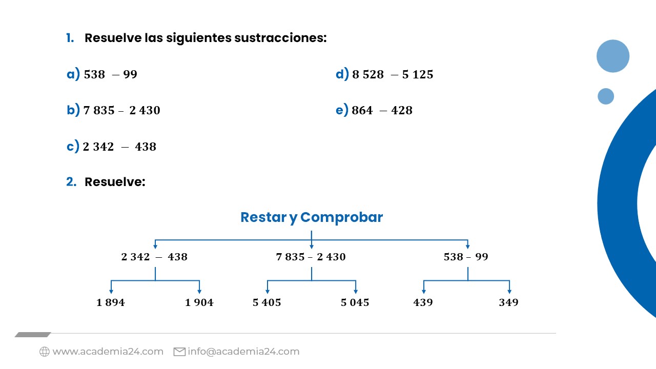 Explicación de las operaciones con números naturales, signos operacionales y sus términos: Sustracción