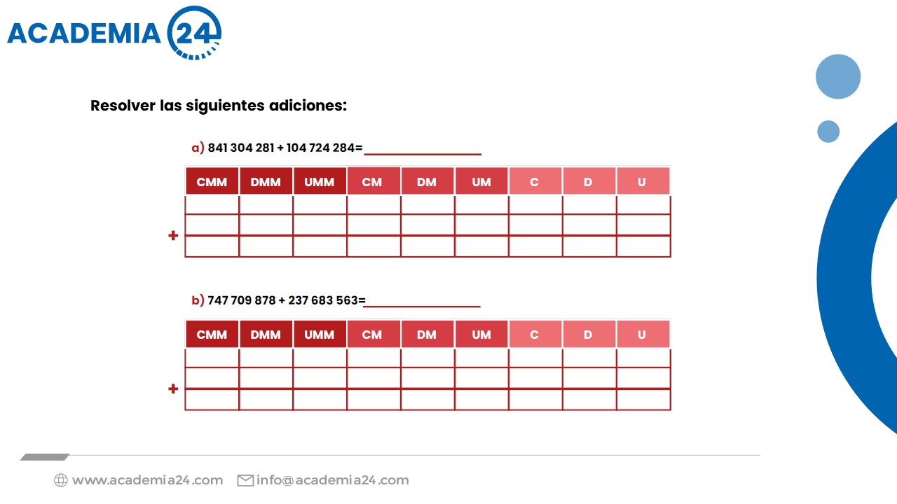 Explicación de las operaciones con números naturales, signos operacionales y sus términos: Adición