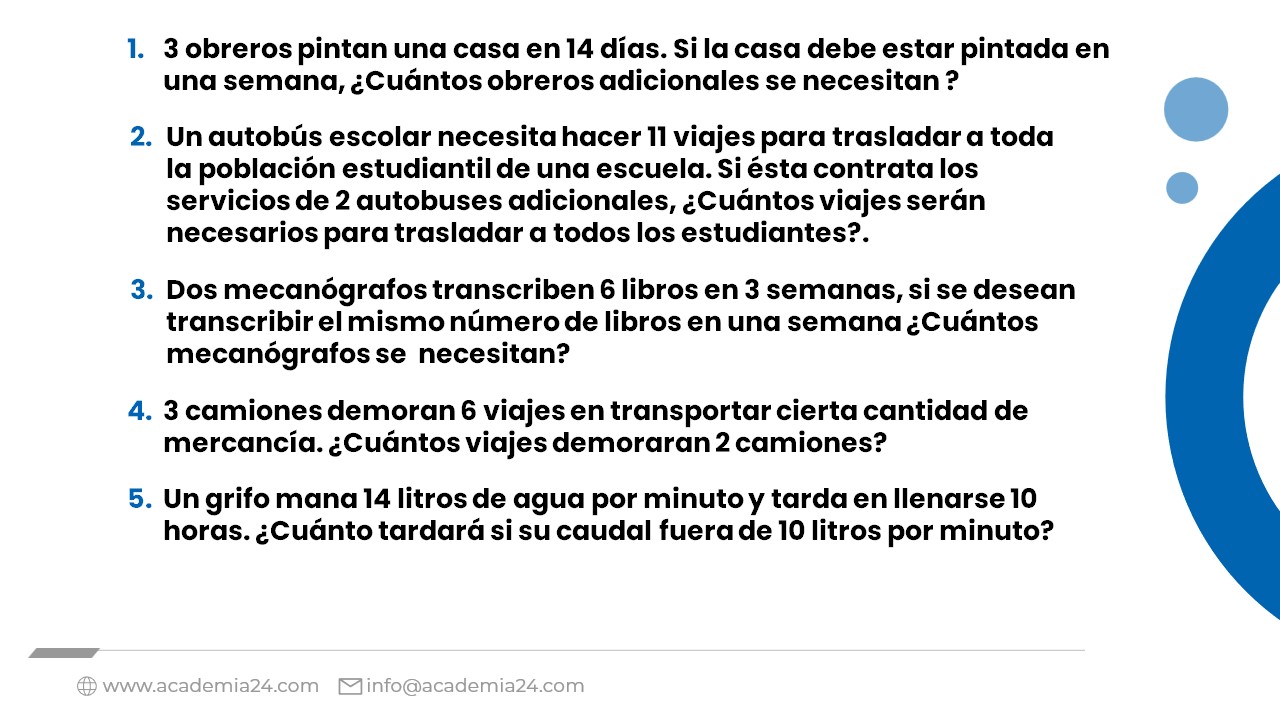 Definición del concepto de regla de tres y su importancia. Resolución de problemas usando regla de tres inversa